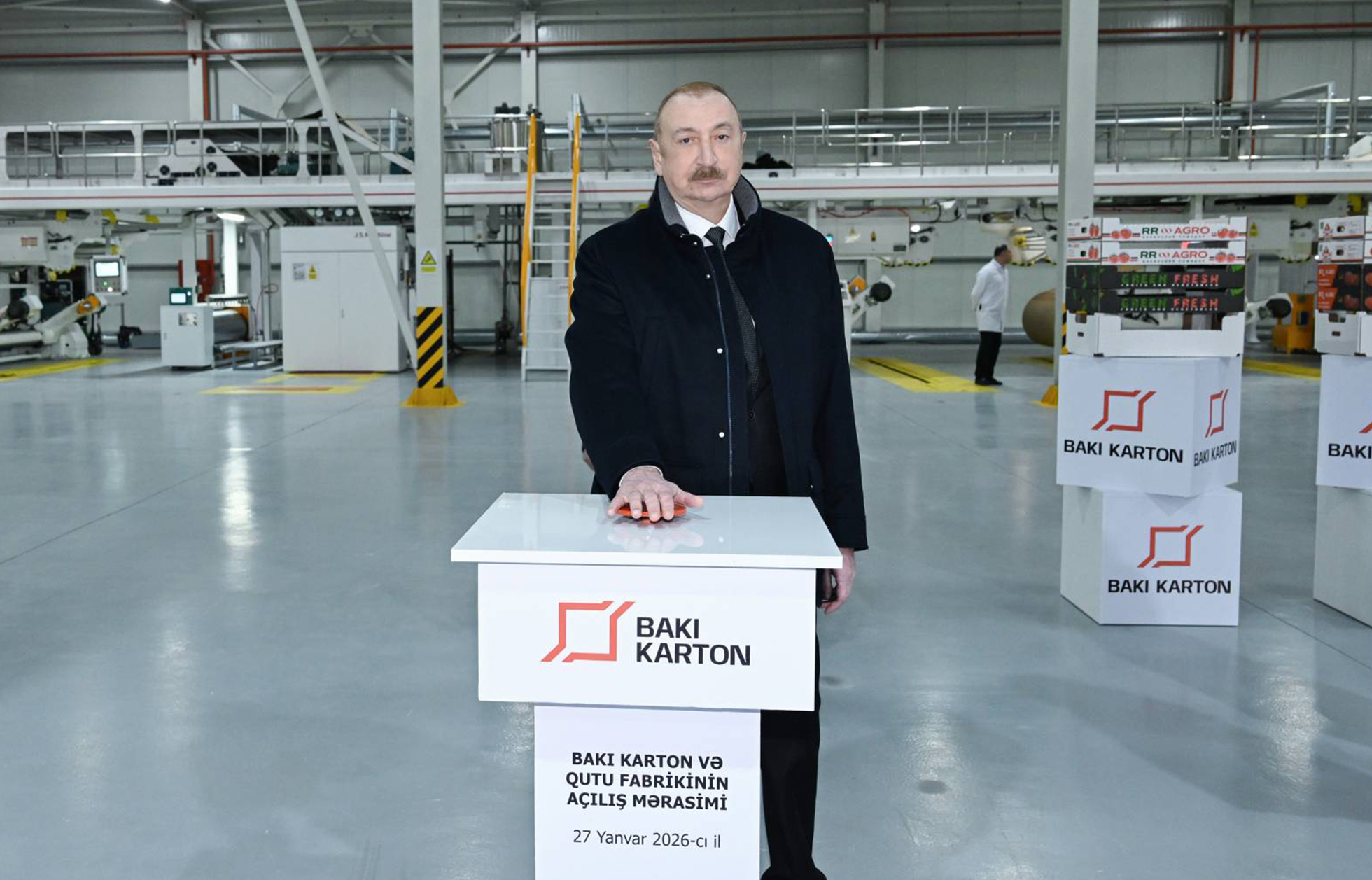 Azərbaycan Respublikasının Prezidenti İlham Əliyev yanvarın 27-də Sumqayıt Sənaye Parkında “Bakı Karton və Qutu Fabriki” MMC-nin karton və qutu taralarının istehsalı müəssisəsinin açılışında iştirak edib.